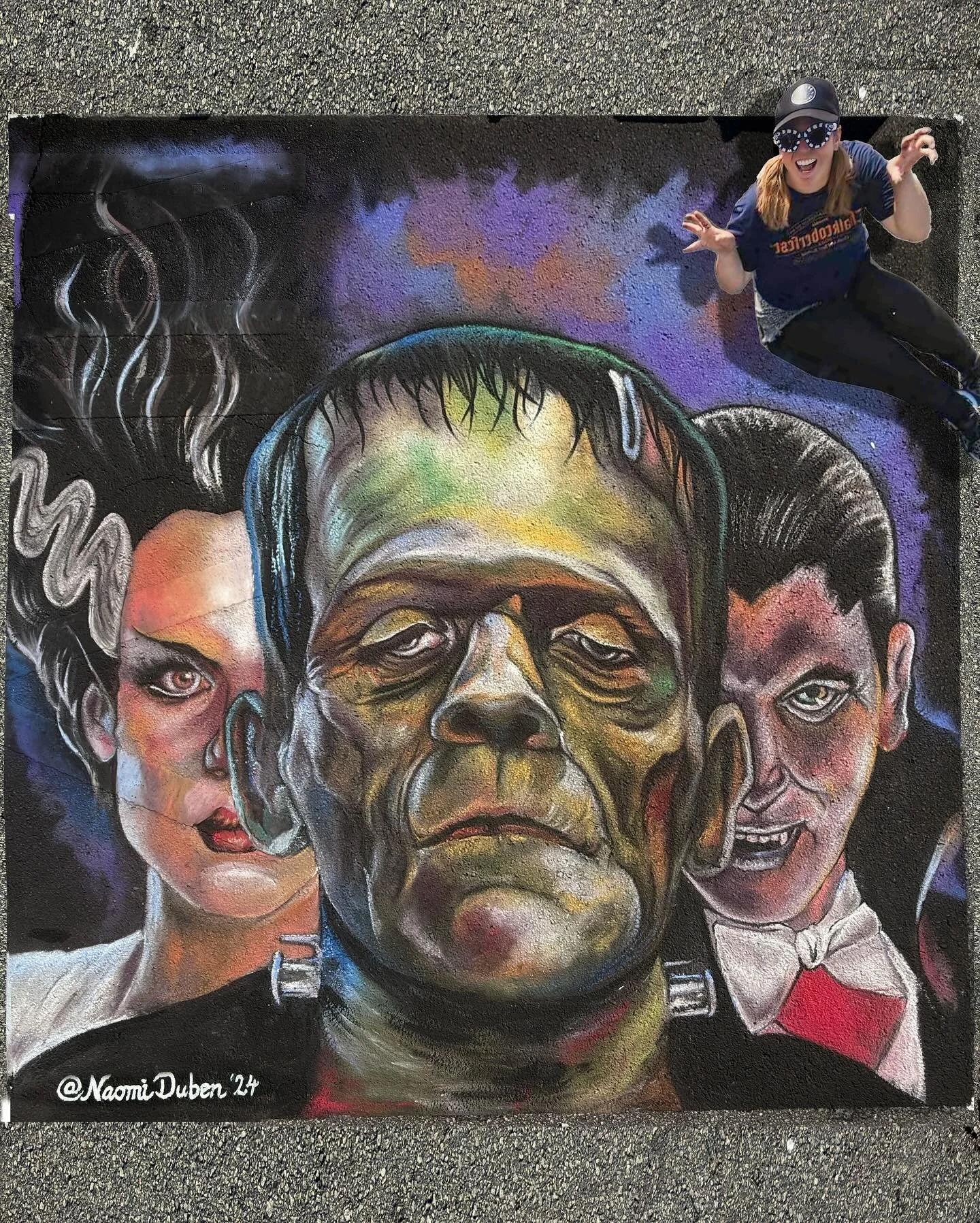 Dive into the lively artistic universe of Naomi Duben, newly moved to Seattle WA! As a Chalk Artist, Painter, Muralist, and Mixed Media Artist, Naomi specializes in chalk art, street painting, murals, mixed media collage, and acrylic and oil pastel paintings, infusing each piece with a delightful blend of realism and fantasy.